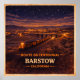 Capture the retro desert vibes of a classic Mother Road hub with this Barstow Centennial poster. Commemorating the 100th anniversary of Route 66, this vintage-inspired artwork features the iconic Barstow Harvey House and rail heritage under a vast, star-filled Mojave sky. The warm desert sunset glow contrasts with the deep evening blues, highlighting the town's legendary status as a crossroads for travelers heading across the California desert.
