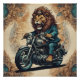 A whimsical Lion named Bart riding a motorcycle wearing a leather jacket.