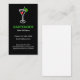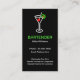 Bold vertical business card design for a Bartender or Barkeep in a cool simple design with image of a Martini glass that has a cherry and drink stirrer and space for your contact information.