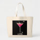 Bartender tote bag for your class materials. Pink Martini Glass on black background. Customise your colours, font and tote bag style online.