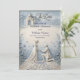 Announce your formal engagement with a romantic, neoclassical aesthetic featuring a dusty blue and cream palette and elegant formal calligraphy.This design relies on a structured hierarchy of classic serif and formal calligraphy, maintaining a clean visual layout with balanced spacing. The artwork illustrates a highly detailed digital bas-relief effect of a kneeling man proposing to a woman in a flowing gown against a domed classical chapel. Rendered in a sophisticated palette of powder blue, slate gray, and off-white, the composition includes a cobblestone path, scattered petals, and a botanical floral border mimicking carved shadows and highlights.This is a flat printed image with a faux carved stone texture effect, not actual raised material.