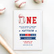 This adorable baseball-themed 1st birthday invitation is perfect for your baby boy’s first birthday party. Designed in bold red, navy blue, and white, it features playful sports graphics and a unique twist on the word "ONE" — the "O" is replaced with a baseball wearing a cute little cap! It's a fun and memorable detail that adds charm to your celebration.