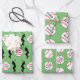 Baseball Ball Player Kids Name Birthday Wrapping Paper. Silhouette of baseball players and baseball balls with custom name on a green background. Personalise with your name or erase the text.