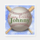 Custom paper napkin features a baseball & a criss-crossed bat, with "Happy Birthday" in a Maroon script and your person's name in a green. From HAMbyWhiteGlove, matching accessories sold separately.