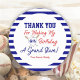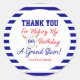 Baseball Birthday Party Blue and Red Round Stickers. Add this "Thank You" sports sticker to your baseball themed party! Use this baseball birthday party sticker as favour tags on your treat bags or just place it on the back of the matching baseball thank you cards that you send out!