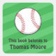 Personalised bookplates featuring a baseball on a green background and the customisable text "This book belongs to [Name Surname]"