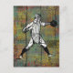 Baseball catcher on multicolored wood background with collage elements of dots, patterns and numbers.