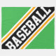 This sporty design features athletic BASEBALL text inside highlighted wide diagonal black, white, and golden yellow racing stripes against bright green background. The first and last letters of the word "baseball" run off the design edges with a dynamic banner effect.