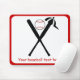 Baseball crossed bats and cap black and red mouse pad that displays a minimalist pictogram icon of black crossed baseball bats, a ball, a cap and your red text on white background with red border. This cool design is a template and it is completely customisable.