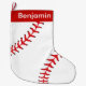 Baceball Design Christmas Stocking, featuring an image of the red laces of a baseball, with customisable personalisation on each side. Fun idea for the baseball enthusiast on your holiday shopping list.