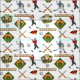 A dynamic baseball sports fabric features players in action, arranged in an energetic pattern full of game-day spirit. Ideal for quilting and sewing enthusiasts. Remember the ball games with this fun fabric design.