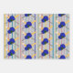 Personalizable christmas gift wrap with baseball theme - 3 sheets. Two sheets feature mistletoe, a baseball diamond, bat and ball, one a Santa hat, the other a baseball cap, the third sheet has red and white candy canes, baseball and a black bow. Background colours we selected are aqua blue, and grey with colour lines, but you have the option of changing those. Be sure to add your text at the personalise prompt. Designed for you by HAMbyWhiteGlove