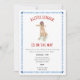 These adorable baby shower invitations feature a watercolor portrait of a golden retriever holding a baseball bat and wearing a baseball cap for a "little slugger" themed baby shower.