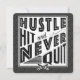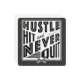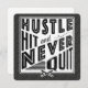 Text reads: Hustle, Hit And Never Quit, with crossed baseball and softball bats icon.