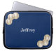 This laptop computer sleeve is decorated with baseballs on a blue background, and personalised with name or other text. It's easy to modify or delete example text. What a wonderful way to protect your laptop. Wonderful gift for baseball players, fans, or coaches. All Rights Reserved © 2014 Alan & Marcia Socolik.