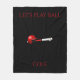"LET'S PLAY BALL" black personalized fleece blanket with child's name.