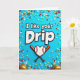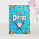 This unique greeting card features a bright blue background with the phrase “I like your Drip” front and center near the top. The text is in thick, 3D-style white block letters with a black outline, so it really stands out. Under the words, there’s a heart-shaped baseball with red stitching, shown like a sweet little symbol of love and sport. Behind it, two reddish-gold baseball bats cross like they’re giving the heart a hug. Scattered all around are tiny sprinkle shapes in red, yellow, white, and light blue, like candy bits tossed across the scene. Near the bottom corners, you can spot rounded golden shapes peeking in, adding a bit more detail without taking over. Overall, it feels fun and affectionate, perfect for a sporty Valentine ❤️