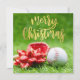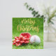 Baseball Merry Christmas with ball on green Holiday Card