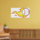 A baseball on fire with flames coming off it. This design looks really effective on these Poster