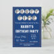 Baseball themed party invitation, editable so you can change the greeting, name, date/time, venue and RSVP details with striped back, available in other colours.