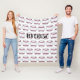 Baseball fan's fleece blanket, with graphics of a red and white baseball pattern. Personalise the large text, in the middle of the blanket to read what you want. Great gift idea.