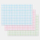 Cute wrapping paper flat sheet set for people and kids who love ball games with a very simple pattern of a doodle baseball . One sheet is light blue , one is pink and on is light green .