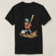 I give wanted to give this a 4 instead of a 5 because these Basic DARK T0shirts run unexpectedly SLIM or Narrow. Which is great if you do not have a potbelly, but I have a paunch. It isn't the shirt's fault that I've got a beer belly. The design and shirt itself is a quality cotton shirt. The color is more of a deep purple, but still a very pretty color. The Basic DARK T-shirts run a bit SLIMMER than the Basic Ts. The neck is a fraction narrower (or seems to be narrower) also. I'm a paunchy middle-aged woman and my neck is 12 inches (31cm) thick and the neckline fell about the same as in the photo of the man, and I had the desire to tug it a bit. So if you're a thick necked man or like loose shirts, be aware these are slimmer shirts. Once I get rid of my lockdown paunch it'll look great. The shirt washed well in cold water with no apparent bleeding. We don't have a dryer, so it hung dry. Did not shrink. Love the colors and the design. The design looks smaller on my shirt than it does on the model on-line. But still, it looks good on the shirt. The printing looks as it does on the model, just the size seems fractionally smaller. Washed garment in cold water, hung dry and design appeared unaffected.