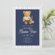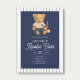 The heading Beary First Birthday stands out in retro calligraphy, bringing a touch of vintage flair that feels both timeless and joyful. Set against a background of navy blue stripes inspired by classic baseball uniforms, this invitation evokes the spirit of the ballpark while maintaining an elegant, polished look.