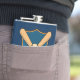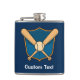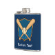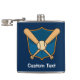 Baseball icon with two bats and a ball over a blue shield. Custom background colour. Custom text.