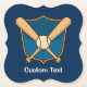 Baseball icon with two bats and a ball over a blue shield. Custom background colour. Custom text.