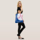 Baseball Softball Coach Personalised Sports Tote Bag. Dark blue background with white baseball or softball with red stitching. Coach written vertically and last name horizontally. Design on both sides. Customise to change background colour from dark blue to any other colour. Great gift for your softball or baseball coach. Baseball sports themed tote bag.