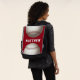 Backpack with a cool baseball sports print design and a personalised white name in the centre on a deep red background. The colour of the background is fully customisable. Click the "Customise" button and choose from the Background Colour Palette any colour you like.