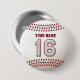 Baseball Stitches Player Number 16 and Custom Name 7.5 Cm Round Badge