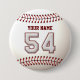 Baseball Stitches Player Number 54 and Custom Name 7.5 Cm Round Badge