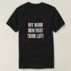 I give wanted to give this a 4 instead of a 5 because these Basic DARK T0shirts run unexpectedly SLIM or Narrow. Which is great if you do not have a potbelly, but I have a paunch. It isn't the shirt's fault that I've got a beer belly. The design and shirt itself is a quality cotton shirt. The color is more of a deep purple, but still a very pretty color. The Basic DARK T-shirts run a bit SLIMMER than the Basic Ts. The neck is a fraction narrower (or seems to be narrower) also. I'm a paunchy middle-aged woman and my neck is 12 inches (31cm) thick and the neckline fell about the same as in the photo of the man, and I had the desire to tug it a bit. So if you're a thick necked man or like loose shirts, be aware these are slimmer shirts. Once I get rid of my lockdown paunch it'll look great. The shirt washed well in cold water with no apparent bleeding. We don't have a dryer, so it hung dry. Did not shrink. Love the colors and the design. The design looks smaller on my shirt than it does on the model on-line. But still, it looks good on the shirt. The printing looks as it does on the model, just the size seems fractionally smaller. Washed garment in cold water, hung dry and design appeared unaffected.