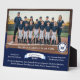 Celebrate your season with this personalised baseball player and their baseball team photo plaque, designed with a bold half-tone navy background and faux woodgrain texture for a classic sports look. Showcase your team photo above a woodgrain baseball bat graphic personalised with your team name, and highlight the callout player’s jersey number on a baseball graphic with their name in a banner design. Add your season year, team roster, and coaching staff names to create a lasting end-of-season gift or team keepsake for players, coaches, and families. Perfect for Little League, high school, or travel ball teams. Please note: all colours can be changed to match your team's colours. Design by Moodthology Papery
