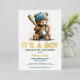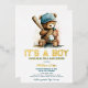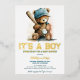 Celebrate your little slugger with this elegant foil baseball baby shower invitation for a boy, featuring a charming teddy bear and premium gold typography. The foil accents add a luxurious touch, making this invitation perfect for a special and memorable baby shower.