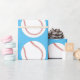 Baseball pattern is printed on custom wrapping paper. A drawing of a baseball in white with red stitches is tiled on wrapping paper. The background colour of sky blue can be customised to any colour of your selection. Great idea for birthday gifts for baseball lovers. Thank you for shopping at CherylsArt on Zazzle.