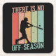 Baseball fans and players alike will love this colourful baseball theme paper coaster with a black silhouette baseball player and text that reads There Is No Off-Season!