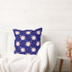 This indoor throw pillow is shown in a blue color with a baseball print.