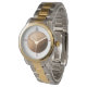 Two-Tone The gold and silver tone watch is a small-faced watch perfect for everyday wear. It features a three-hand quartz movement, water resistance to 100 feet, and a gold and silver tone metal bracelet. Customise the face with your name and designs for a watch customised for your wrist only.