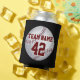 Baseball Art Team Name and Number Custom design brought to you by Imagine That! Design features a painting of a baseball with Team Name and Number in a deep red to match the baseball stitching. Don't forget to personalise your sports gear. A great gift for sports lovers, baseball lovers, and baseball fan of all ages. Go wild and collect all our fun sports balls.
