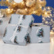 Basenji Christmas art is beautiful on a wide variety of holiday merchandise. This basenji is decorating a woodland tree, and appears to be asking his forest friends if this is the right spot to place the ornament!