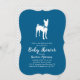 Include the big brother or sister fur baby in the celebration with this adorable Basenji dog baby shower design! Perfect for a puppy lover with a baby on the way. The Basenji is next to an adorable vintage carriage. The blue makes it perfect for a baby boy on the way!