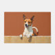 The muted burnt orange background adds warmth and character, making it perfect for welcoming entryways. Designed with extra space at the top and bottom, it allows easy customization with names, welcome messages, or personalized text—ideal for dog lovers and one-of-a-kind doormat gifts.