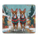 This festive design captures the joyful spirit of the holiday season, featuring an adorable dogs.Nestled in a winter wonderland, complete with a decorated Christmas tree, and beautifully wrapped presents. Snowflakes gently fall, adding a magical touch to the scene, while the vibrant colours of the holiday decorations create a warm and cheerful atmosphere.