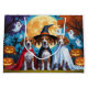 A playful Halloween scene featuring a mischievous little pup peeking out of a carved pumpkin, surrounded by spooky-fun fall vibes. With cheeky charm and autumn colours, it’s the perfect touch of humour for the season.