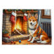 This charming holiday scene features a sweet Basenji sitting beside a warm fireplace, wrapped in glowing Christmas lights with stockings hanging overhead. The breed’s alert expression and graceful posture bring extra charm to this cozy seasonal setting. Perfect for Basenji lovers, holiday décor enthusiasts, and anyone looking for heartwarming Christmas artwork on Zazzle that highlights the unique personality of this beloved breed.