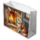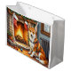 Basenji Sitting by Fireplace with Christmas Lights Large Gift Bag