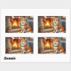 Basenji Sitting by Fireplace with Christmas Lights Rectangular Sticker